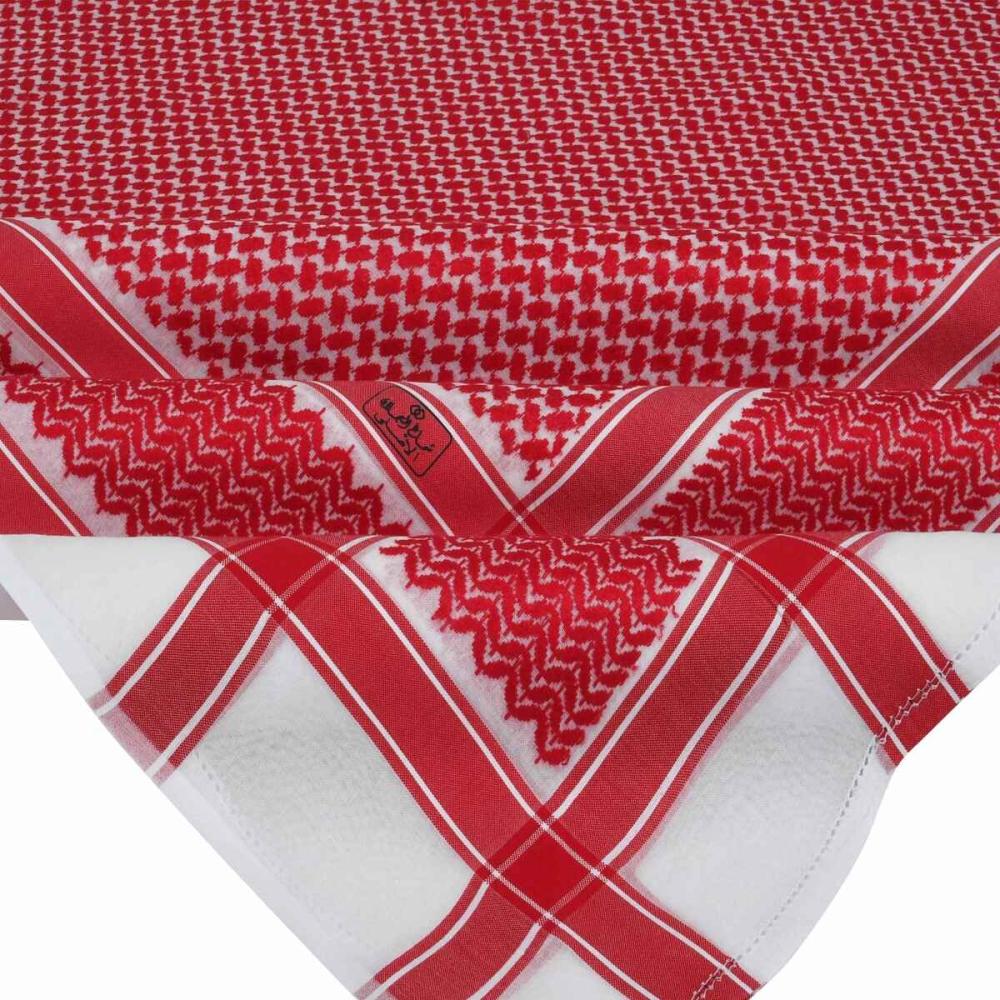 - اللون/النقشة: أحمر غامق مع ختم أسود وتميّز في ثبات اللون.