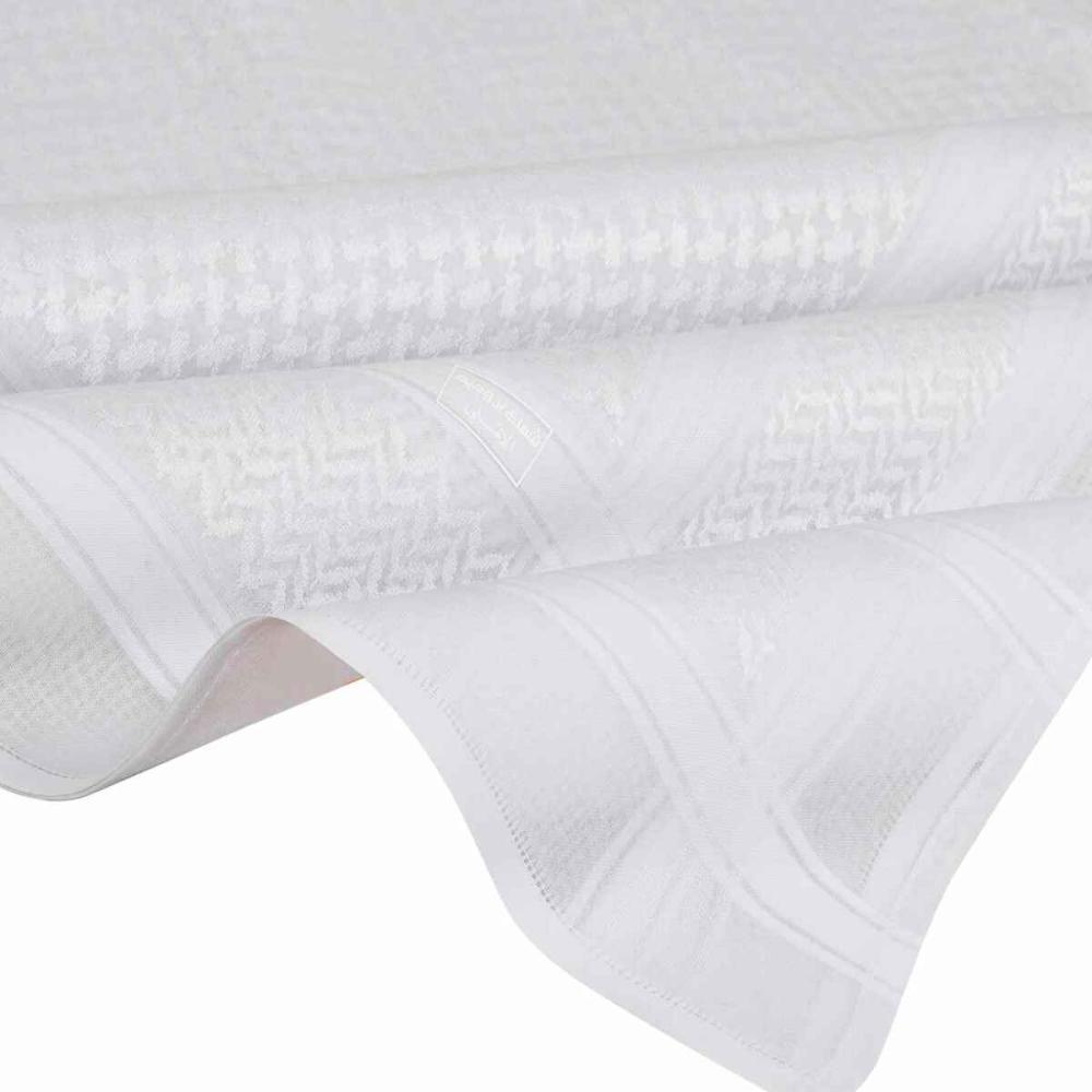 - اللون/النقشة: أبيض ثلجي سادة بإنهاء متقن وحياكة ثابتة للأطراف.