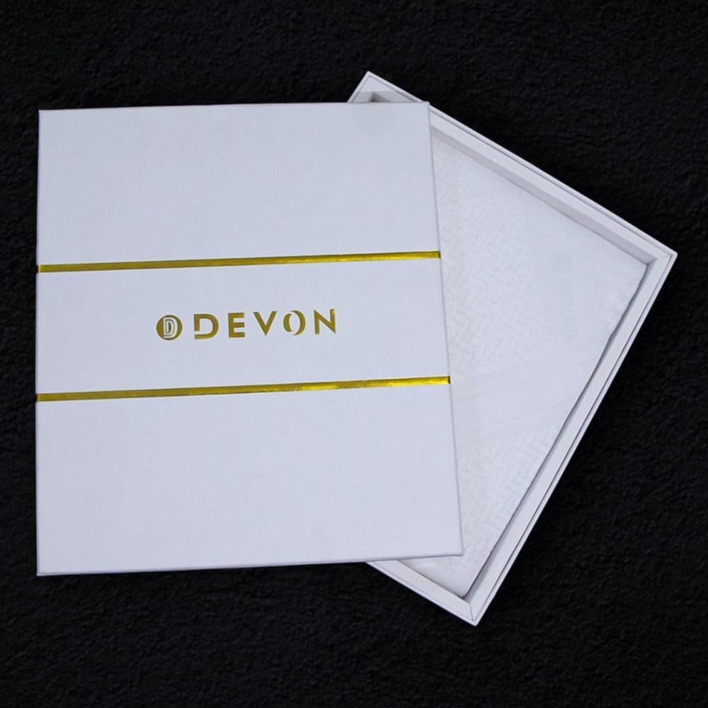 - نوع المنتج: شماغ رجالي Devon – White 2022 بنقشة إنجليزية هادئة ولون أبيض صافي مع تغليف أنيق.