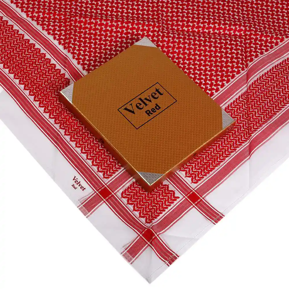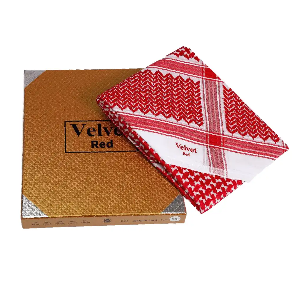 - نوع المنتج: شماغ رجالي Velvet Red – C24 بلون أحمر دم الغزال ونقشة إنجليزية متقنة مع تغليف فاخر مناسب للإهداء.